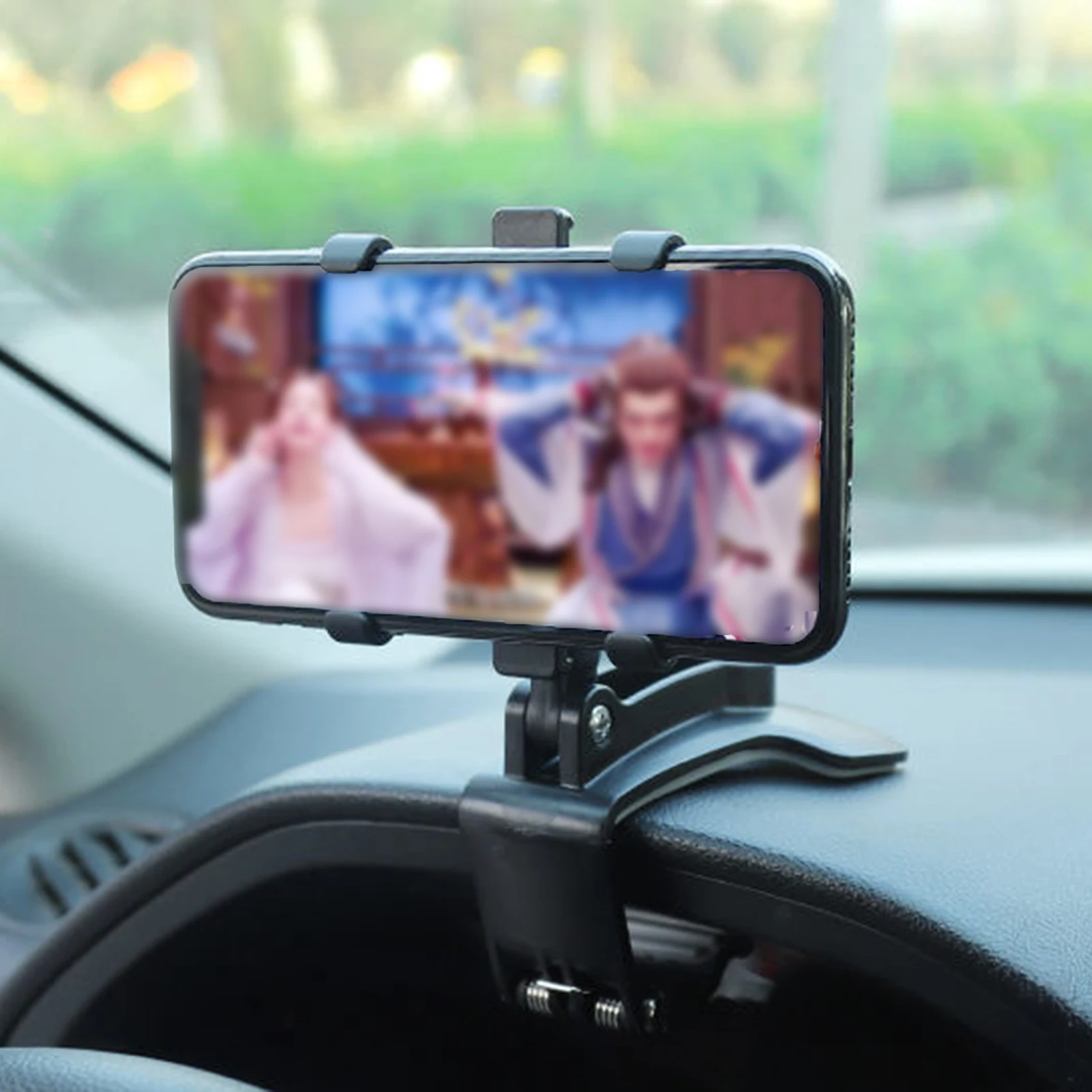 - Installation: Clean your dashboard surface, then firmly clip the mount onto your dashboard edge or air vent