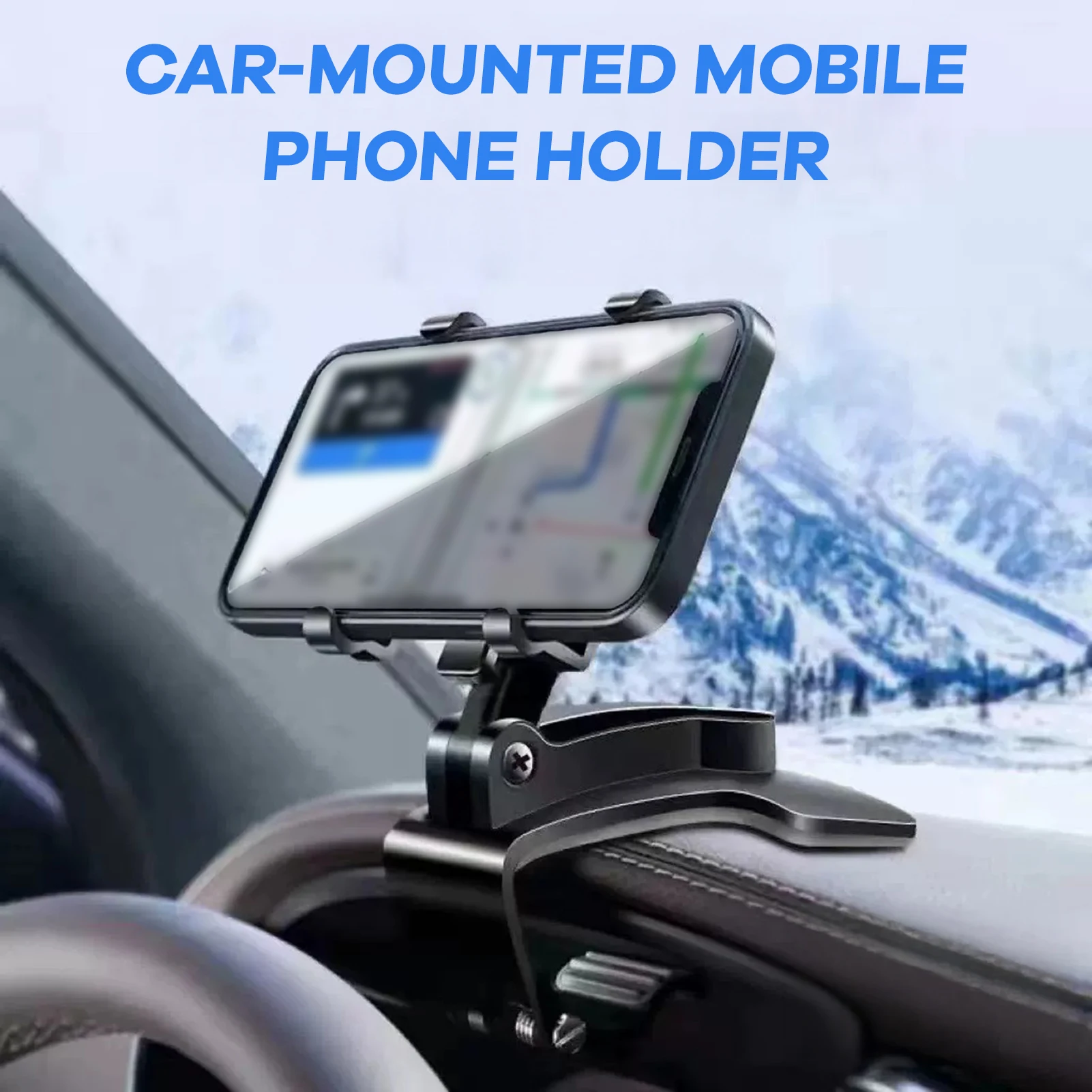 Keep your eyes on the road with our premium rotating car phone mount. Designed for universal compatibility, this dashboard phone holder securely clips onto your car's dashboard, providing a stable and adjustable viewing angle for hands-free GPS navigation, calls, and music control.